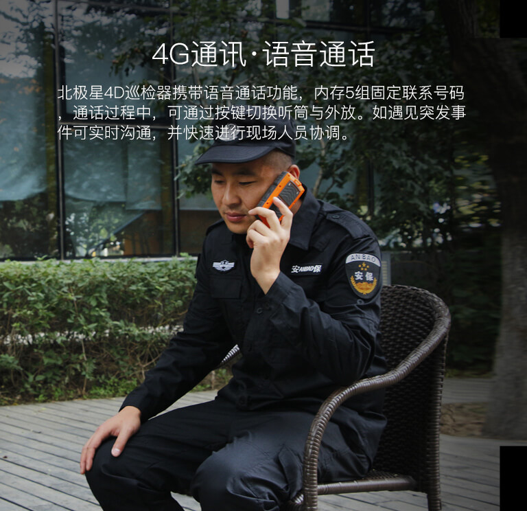 進一步了解GPS定位功能北極星4D巡檢器攜帶語音通話功能,內存5組固定聯系號碼,通話過程中,可通過按鍵切換聽筒與外放。如遇見突發事件可實時溝通,并快速進行現場人員協調。