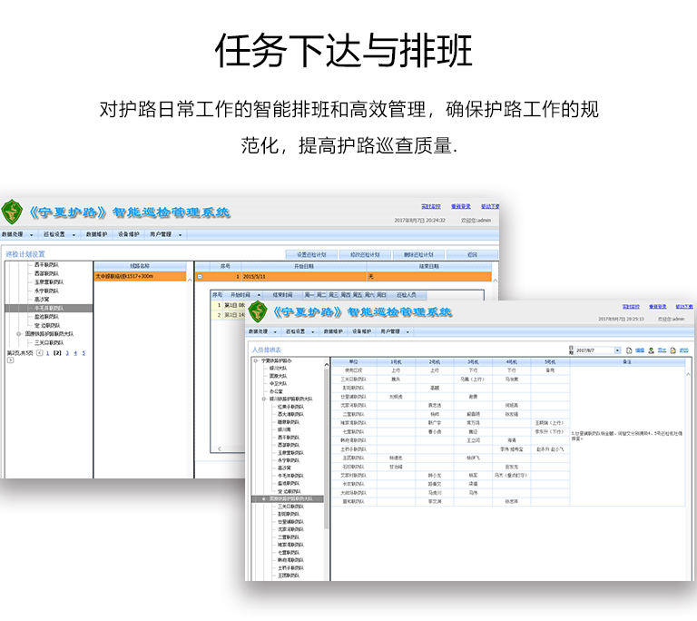 對護路日常工作的智能排班和高效管理,確保護路工作的規(guī)范化,提高護路巡查質(zhì)量。
